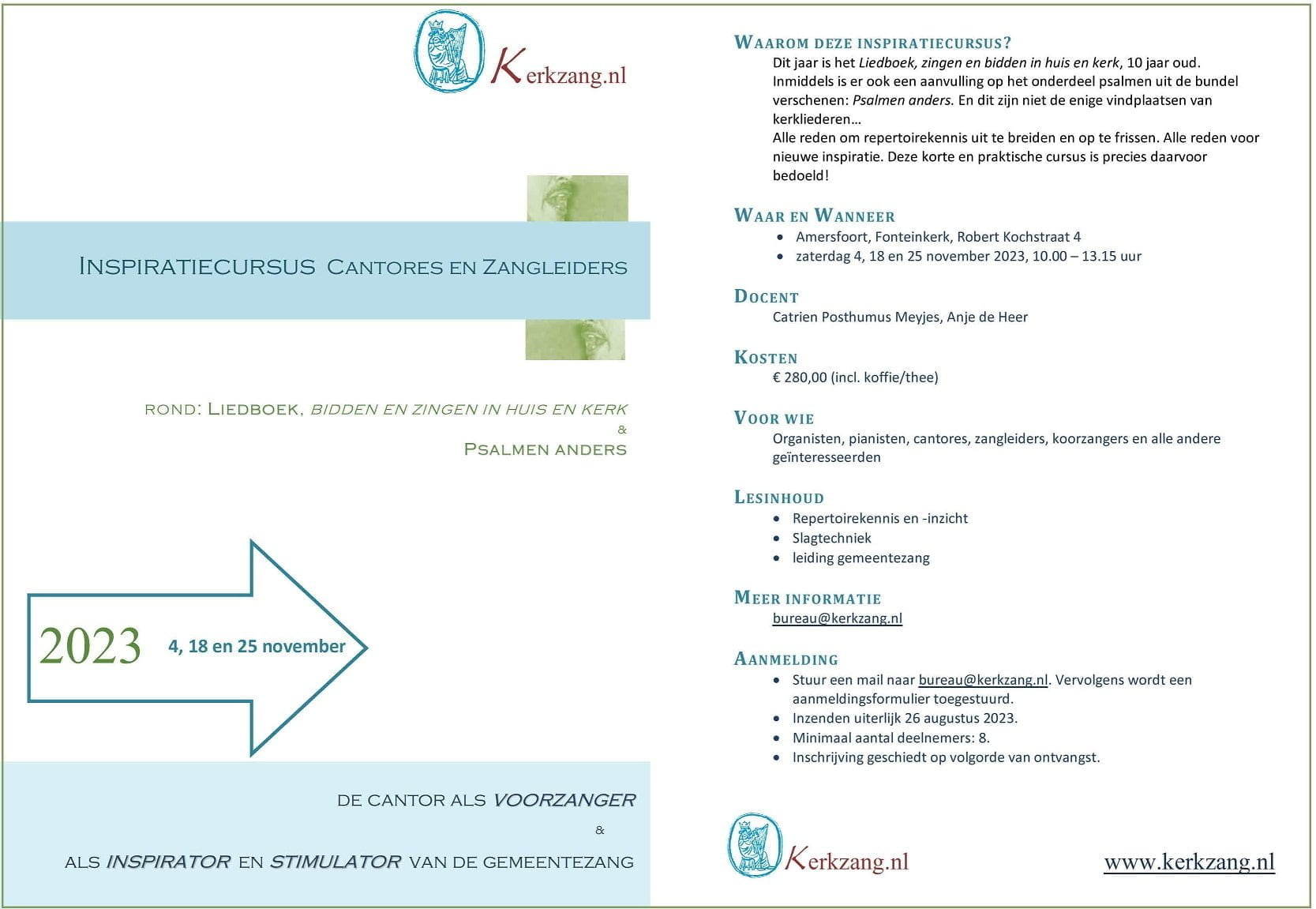 stuur een e-mail naar bureau@kerkzang.nl. Vervolgens wordt een aanmeldingsformulier toegestuurd. Inzenden uiterlijk 26 augustus a.s. Er geldt een minimaal aantal deelnemers: 8; inschrijving geschiedt op volgorde van ontvangst.